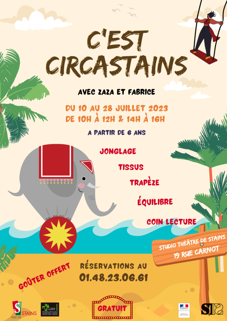 Nos circassiens préférés Zaza et Fabrice vous donnent rendez-vous cet été au Studio Théâtre de Stains pour faire des acrobaties mais aussi pour vous initier à tous les arts du cirque ! Nous nous ferons un plaisir de fêter l’été ensemble, on vous attends !