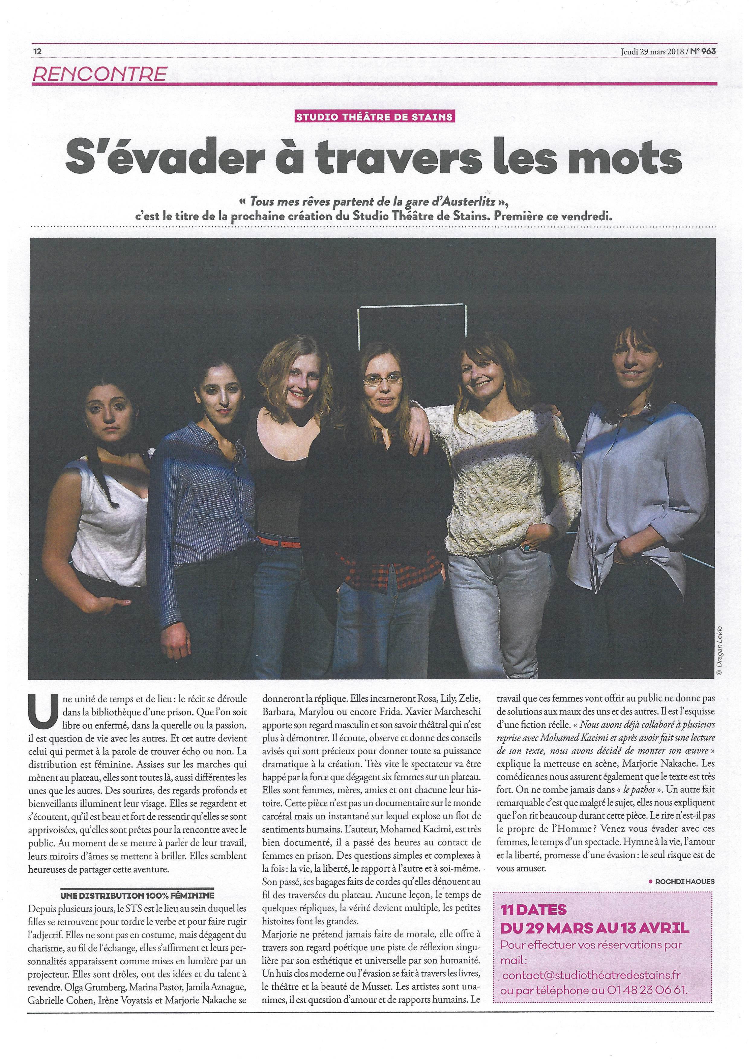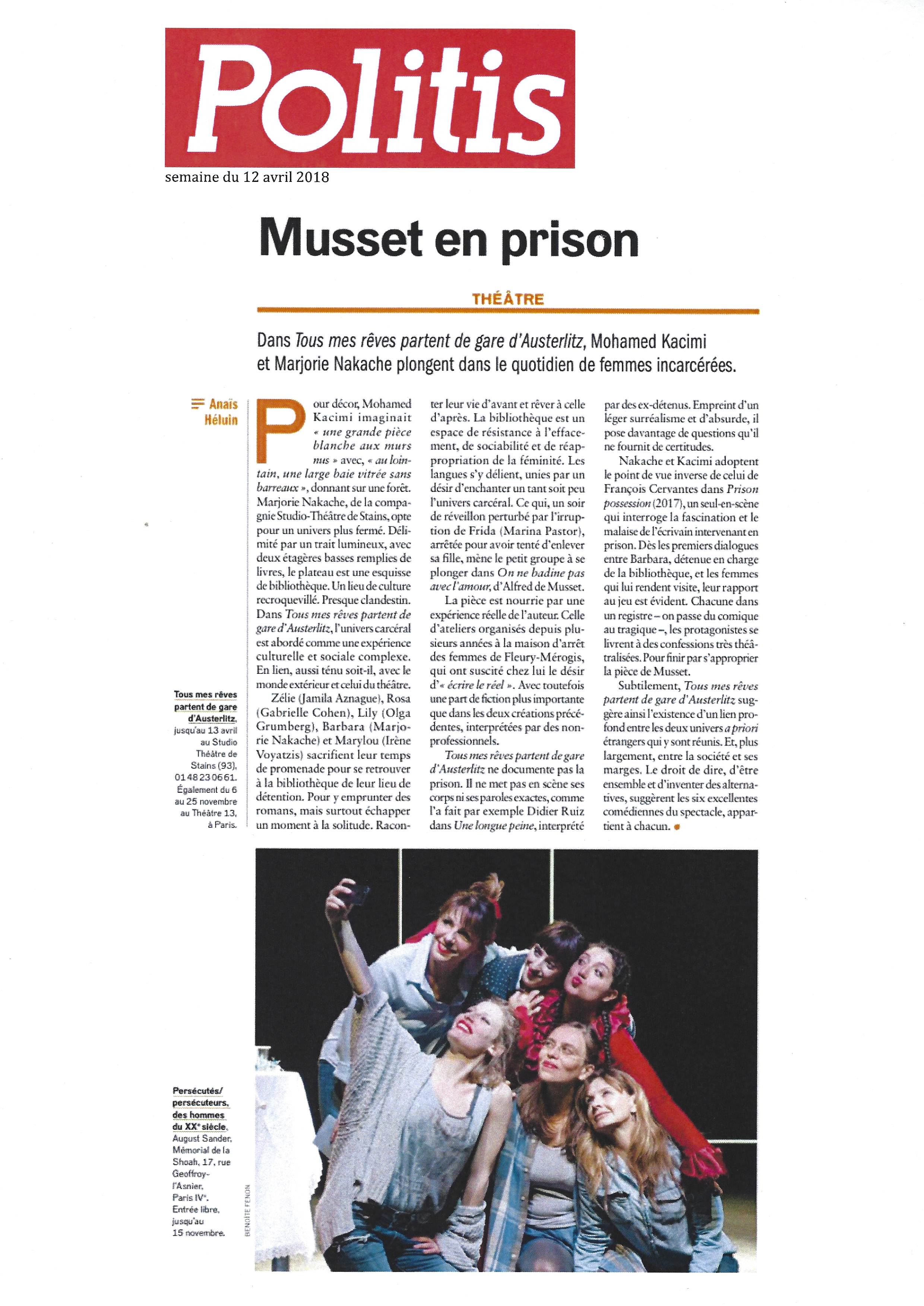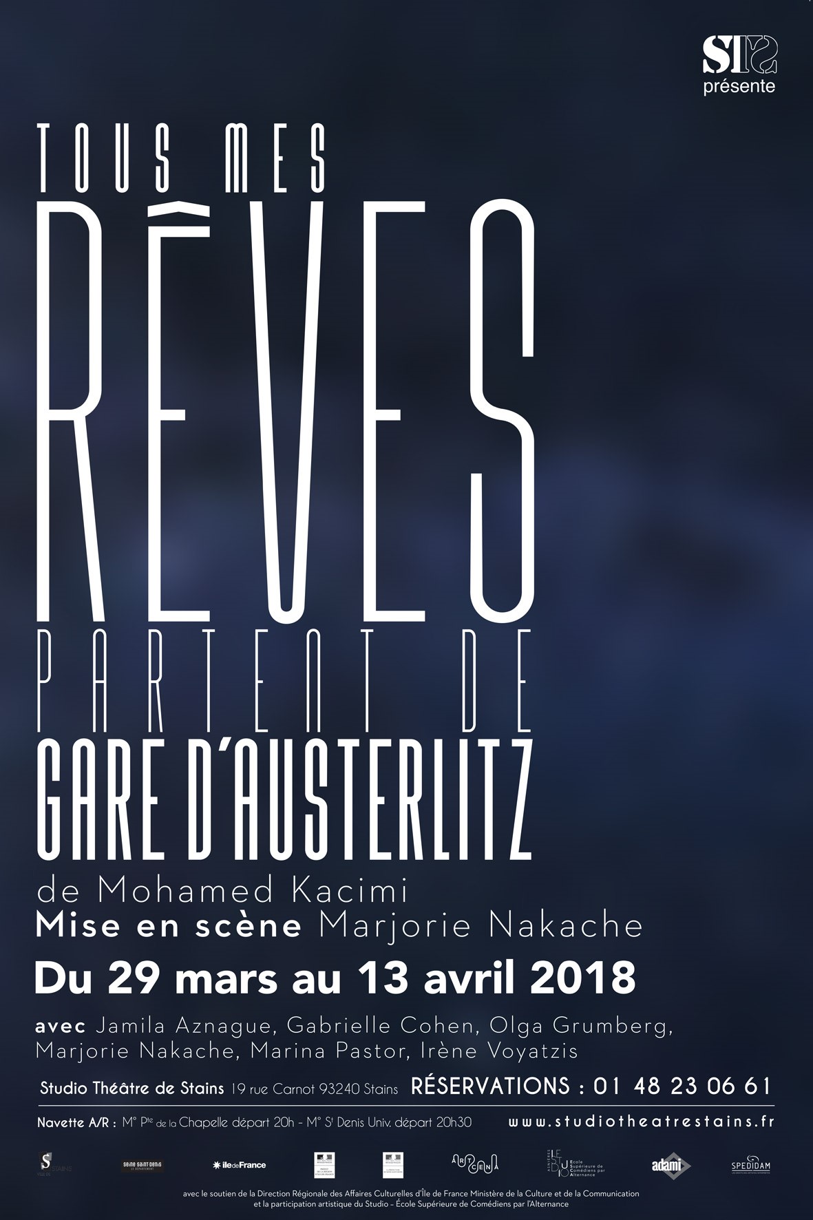 Dans Tous mes rêves partent de gare d’Austerlitz, de Mohamed Kacimi, mis en scène par Marjorie Nakache, six femmes emprisonnées se créent un univers de survie. Une écriture sensible à partir de témoignages recueillis en maison d’arrêt. Drôle et émouvant avec des comédiennes sur le fil.