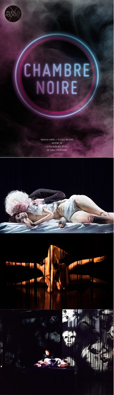CHAMBRE NOIRE : Mise en scène – Yngvild Aspeli // Co-mise en scène – Paola Rizza // Dramaturgie – Pauline Thimmonier // Jeu et manipulation – Yngvild Aspeli // Percussions en direct – Ane Marthe Sørlien Holen // Composition – Guro Skumsnes Moe // Construction marionnettes – Yngvild Aspeli, Pascale Blaison & Polina Borisova // Scénographie – Elisabeth Holager Lund // Costumes – Sylvia Denais // Création lumière – en cours