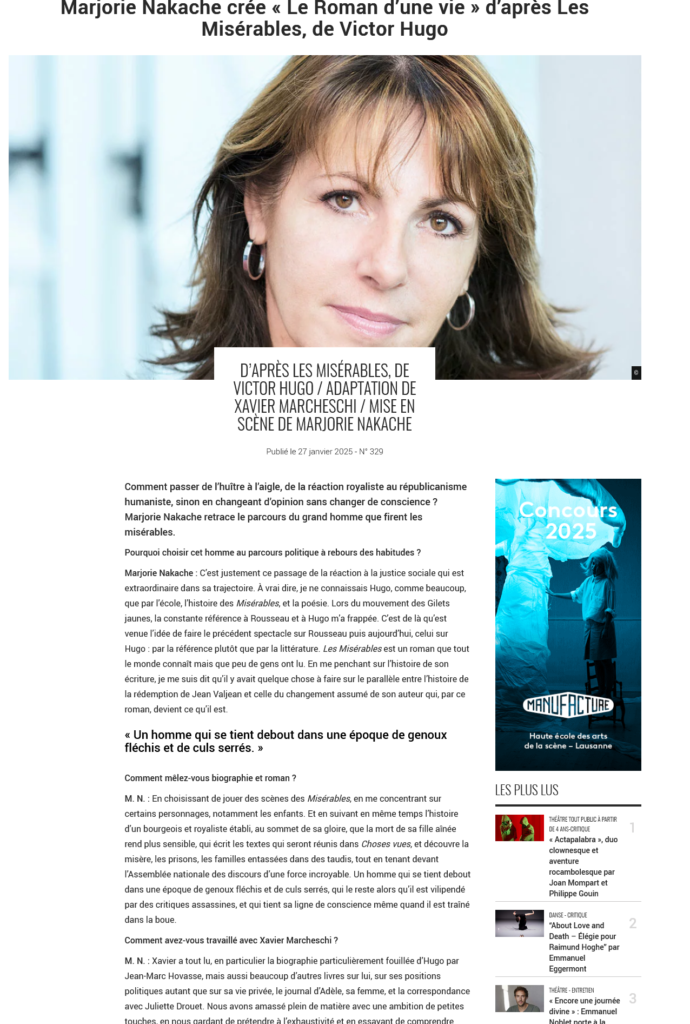 « Marjorie Nakache crée « Le Roman d’une vie » d’après Les Misérables de Victor Hugo »