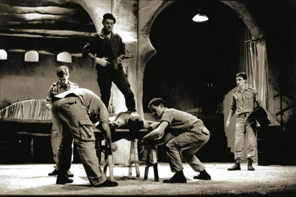 L’adaptation situe l’action, non pas dans une villa de spécialistes, mais dans un magasin d’approvisionnement regorgeant de biens terrestres, magnifique mechta où les deux cultures se mélangent et dans laquelle règne une paix morte. Là, vivent, cohabitent les gars du contingent avec leurs haines, contradictions. Les tragiques «évènements» sont à l’extérieur, comme irréels. D’autres s’en occupent. Les durs.