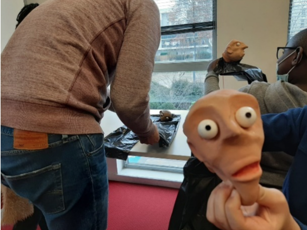 Lors de leur venue à Stains au mois de décembre, Yoann et Antonin sont intervenus dans le cadre d’ateliers « manipulation marionnette ». Ils ont animé les ateliers avec différents groupes et différents publics rencontrés respectivement à La Maison du Temps Libre, l’EMP Henri Wallon ou encore au collège Barbara. « Le roi des nuages » se jouera au STS en avril 2021.