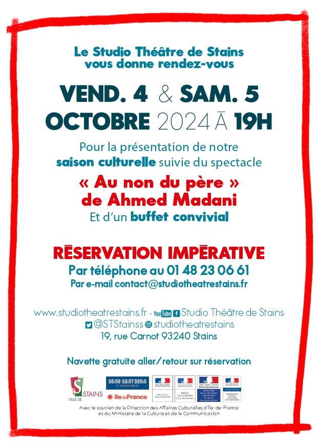 Entrée libre sur réservation obligatoire au 0148230661 ou par mail à contact@studiotheatrestains.fr