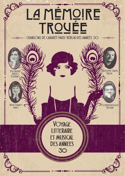 À travers les mélodies de Willy ROSEN, Kurt WEIL, Friedrich, HOLLANDER que chantaient à l’époque Joséphine BAKER, Kurt GERONNE ou Lotte LENYA, et des extraits de Confessions d’un bourgeois, l’autobiographie savoureuse Sàndor MÀRAI, on plonge pendant un peu plus d’une heure dans l’effervescence, l’élégance et le charme de ce monde d’hier, de ces années folles.
