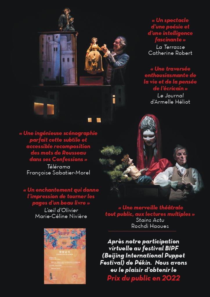 ROUSSEAU ET JEAN JACQUES – Mise en scène : Marjorie NAKACHE – Adaptation Xavier MARCHESCHI – Avec : Sandrine FURRER, Martine PALMER, Xavier MARCHESCHI et Sonja MAZOUZ – Scénographie et marionnettes : Einat LANDAIS – Réalisation Décor : Jérémie LEGROUX et Sébastien BAILLE – Réalisation marionnettes et accessoires : Julia DIEHL, Cerise GUYON et Einat LANDAIS – Costumes : Nadia REMOND – Lumière : Hervé JANLIN – Au Studio Théâtre de Stains – Le 2 décembre 2020 – Photo : Benoîte FANTON